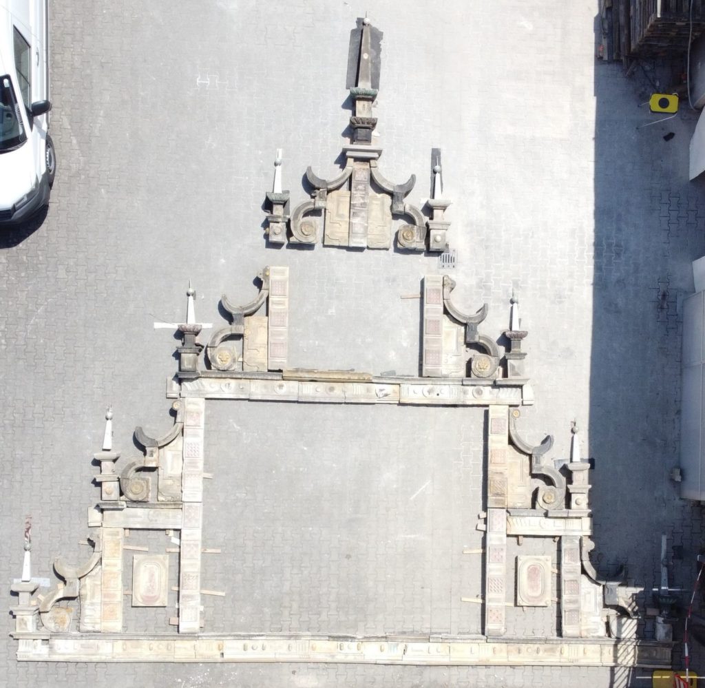 Derzeit verschaffen sich die Expertinnen und Experten der Steinrestaurierung Armin Hellstern Steinrestaurierungen GmbH sowie der Gruppe GME Architekten BDA einen Überblick über die Spolien und planen die bautechnischen Möglichkeiten für den Wiederaufbau.